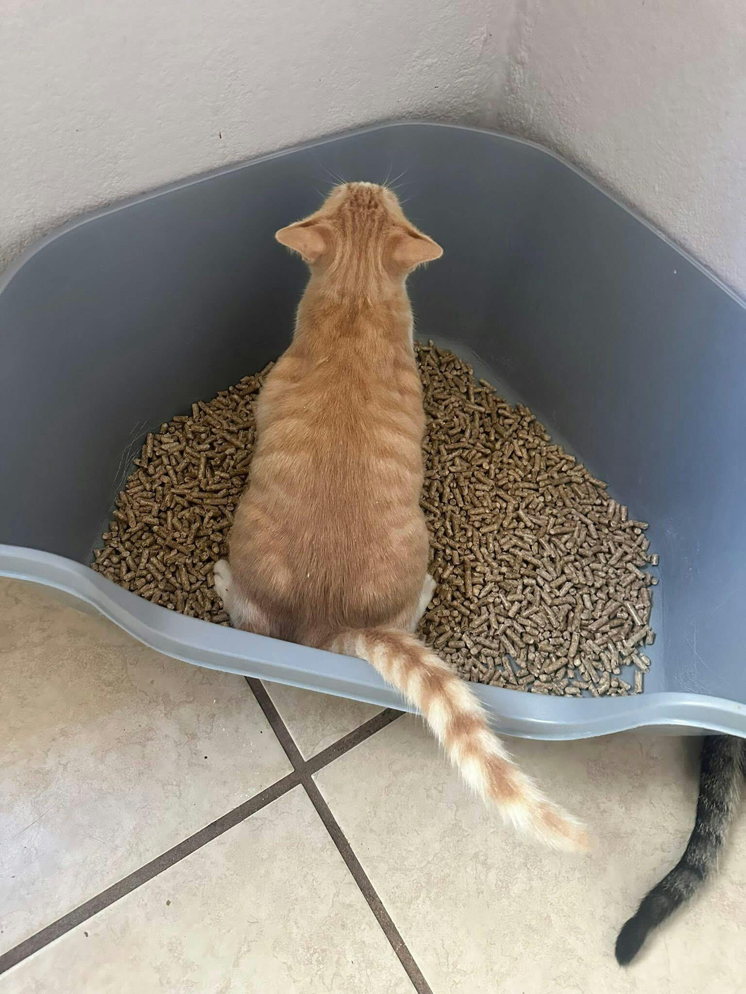 2. Revisa periódicamente el arenero, retira los pellets humedecidos y deposítalos en la basura (o en el inodoro, poco a poco).